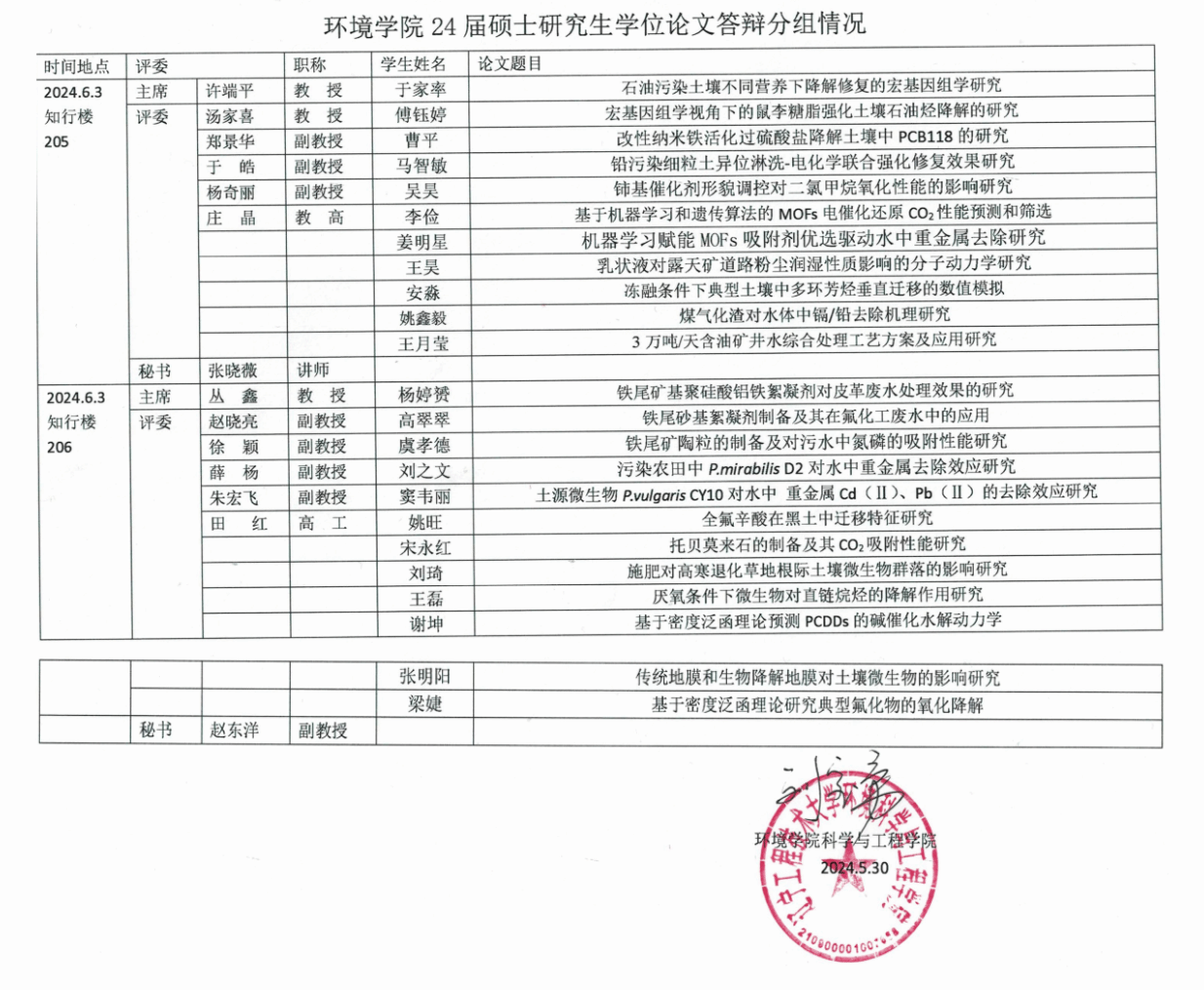 瓜子tv 24届硕士研究生学位论文答辩分组情况