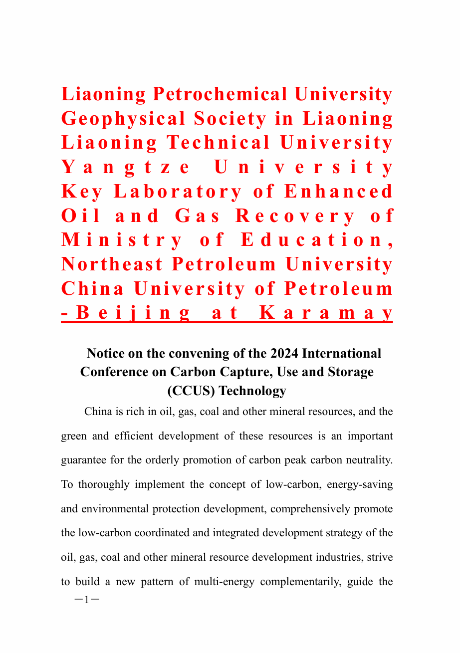 Notice on the convening of the 2024 International Conference on Carbon Capture, Use and Storage (CCUS) Technology