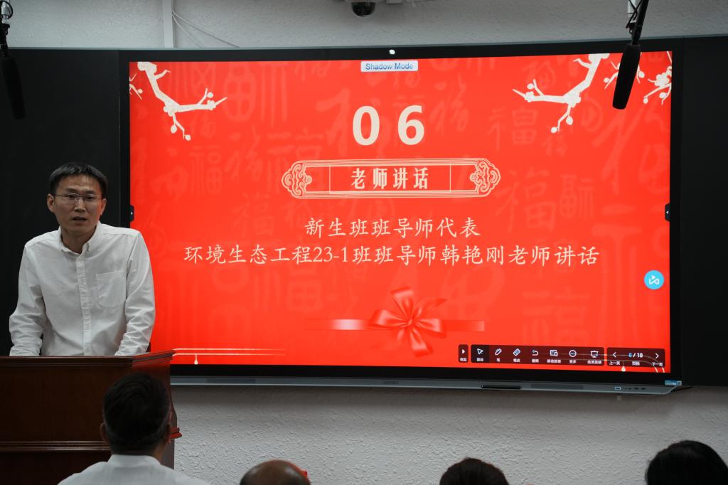 环境生态工程2023级1班班主任韩艳刚老师作为新生班导师代表发言。作为瓜子tv