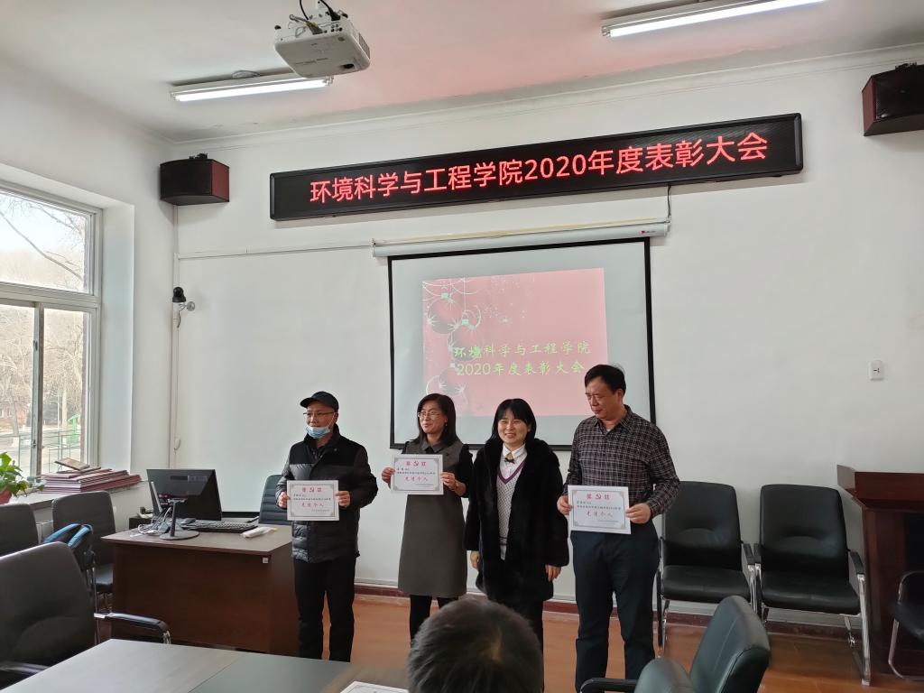 会议室召开了2020年度学院表彰大会。会上对本年度在学院各项工作中表现突出的集体和个人进行了表奖。其中,汤家喜等3人为优秀教师,郑景华等4人为优秀党务工作者,范荣桂等3人为学生工作先进个人,李静等4人为优秀党员,许端平等2人为管理与服务先进个人,杨奇丽等5人为学科专业建设先进个人,环境工程系、水土保持与荒漠化防治系为先进集体,环境科学教工党支部和学生党支部为优秀党支部。