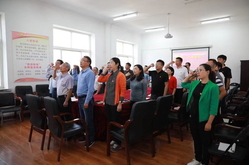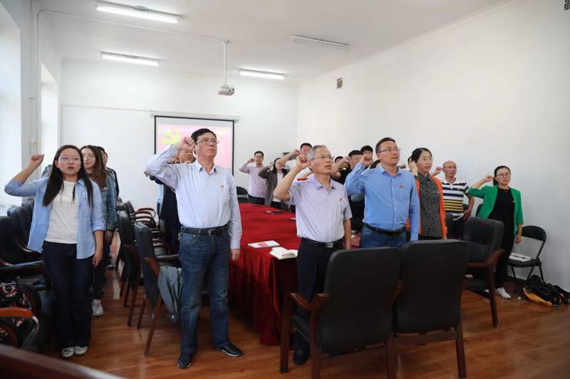 为庆祝新中国建立70周年,激发师生党员的爱国情、强国志,2019年9月25日瓜子tv 党委举办了“我和我的祖国”主题党日活动,学院师生党员三十余人参加了此次活动。本次活动包括“唱国歌”、“重温入党誓词”、“歌唱我和我的祖国”、“学习强国”等四个部分。全体师生党员饱含热情歌唱祖国、祝福祖国。在学习环节,院党委书记宋子岭带领全体党员认真学习了《习近平总书记在“不忘初心、牢记使命”主题教育工作会议上的重要讲话》和《深入学习习近平总书记关于力戒形式主义官僚主义重要论述和政绩观教育》等内容。