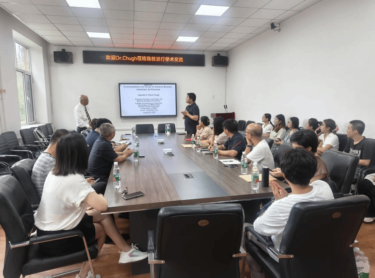 会议室以“Evolving Needs and Trends to Enhance Minerals Industries: An Overview”为主题作学术讲座,主要介绍了全球矿产资源的国际需求和发展趋势。讲座结束后,Chugh博士与师生代表就教学科研、人才培养、生态环境保护、校际合作等进行了广泛交流。科学技术研究院金佳旭副院长,瓜子tv