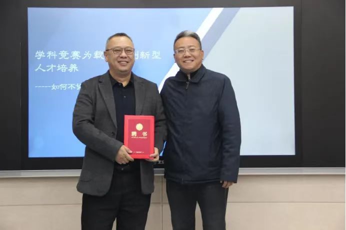 孙凯老师主要围绕学科竞赛重要性、创新及其层级、学科竞赛的步骤三个方面,紧密结合竞赛实践案例进行了讲授,并与在场师生进行互动答疑。讲座后,学院党委副书记蒋思对孙凯老师的精彩讲授表示感谢,对于学院学生科研团队提出期望。