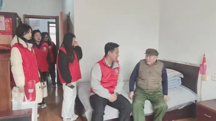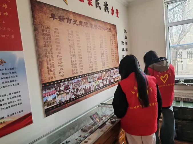 志愿者们参观了院内小型红色教育展馆,与老人进行了亲切的交谈,抗美援朝老兵的抗战故事使同学们深受触动。志愿者主动对光荣院内的卫生进行打扫,为老人送上了精心准备了水果和礼物表示美好祝愿。