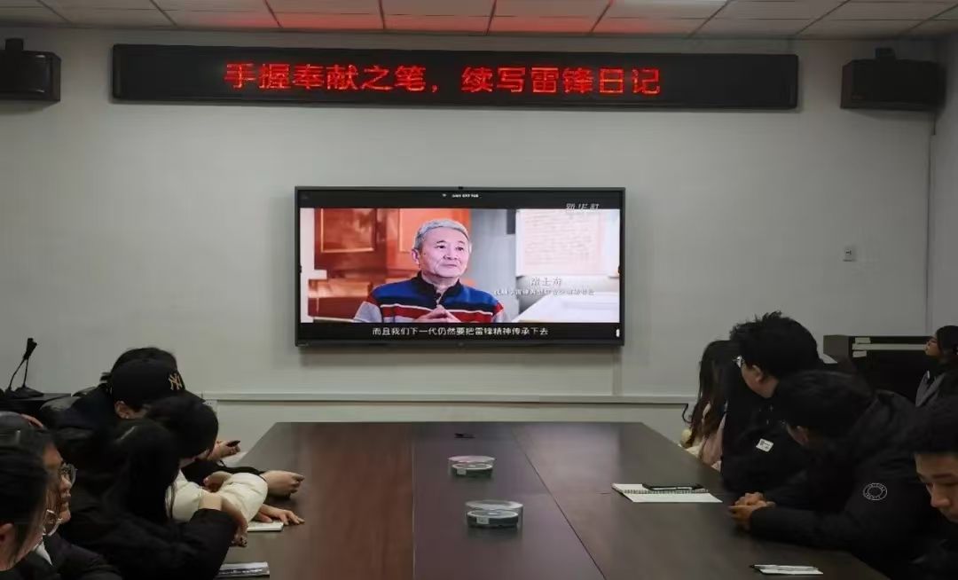 会上,组织学生观看雷锋事迹纪录片《穿越时空的榜样力量》,深入学习雷锋同志艰苦奋斗、无私奉献的崇高精神。观影结束后,同学们结合学习生活实际展开热烈讨论。