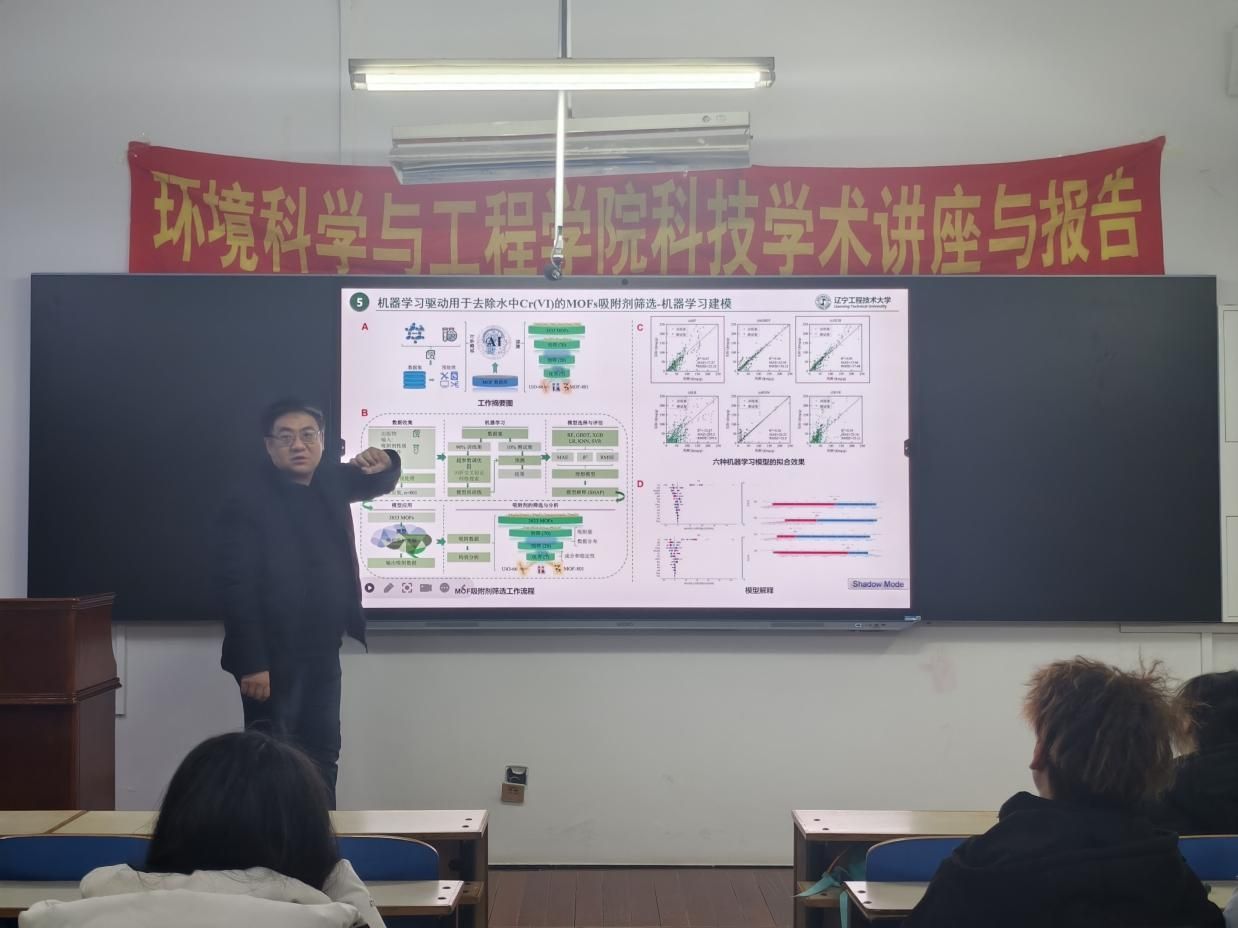 王老师在会上介绍了机器学习在水污染控制领域的前沿应用,重点讲解了机器学习驱动MOFs吸附水中重金属性能预测的相关研究。MOFs作为新型吸附材料,其对水中重金属的吸附性能备受关注。通过机器学习算法,能够建立准确的预测模型,快速筛选出对特定重金属具有高效吸附性能的MOFs材料,极大地节省了实验成本与时间。