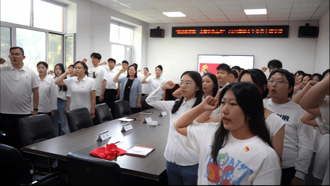 誓言如磐,丹心向党。在副书记蒋思的带领下,全体党员面向党旗,庄严地举起右手,饱含着对党的忠诚与热爱,重温入党誓词,将不忘初心牢记使命的信念融入到铿锵有力的誓言声中。学院党委为毕业生党员送上一份特殊的政治生日贺卡,表达了来自组织的关心与温暖、培养与厚爱。