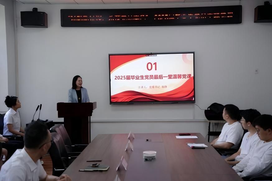 为深入贯彻中央八项规定精神学习教育,强化毕业生党员理想信念,6月18日上午,在毕业生离校前夕,学院党委在知行楼206会议室以“扬帆新征程,永葆党员本色”为主题开展2025届毕业生最后一次温馨党课教育。学院党委书记杨铮、副书记蒋思、党政办主任刘爽、团委书记肖鹏、学生党支部书记及全体毕业生党员参加,活动由组织员贺思楠主持。
