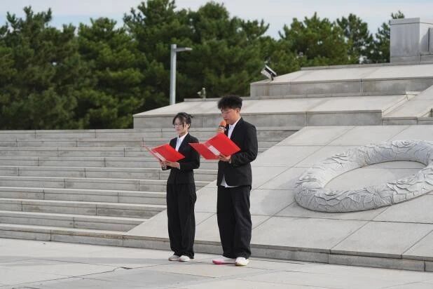 仪式中,全体师生整齐列队,面向死难矿工纪念碑奏唱中华人民共和国国歌,国歌声在遗址上空回荡,师生表情凝重,注视着纪念碑上“1931-1945”那段黑暗历史的记载。唱毕国歌,全体师生为死难矿工默哀一分钟,在寂静中,感受那段血腥历史的重压。随后,学生代表进行了题为《以史为鉴,圆梦中华》的诗朗诵,铿锵有力的词句表达了年轻一代对历史的铭记和未来的担当。
