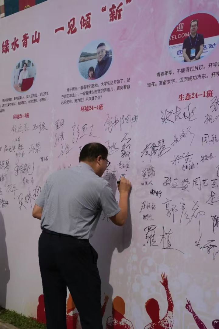 还为2024级新生准备了打卡照像框、签到幕布墙,志愿者们耐心地为新生解答各种问题,介绍学校的规章制度、校园环境和专业特色。