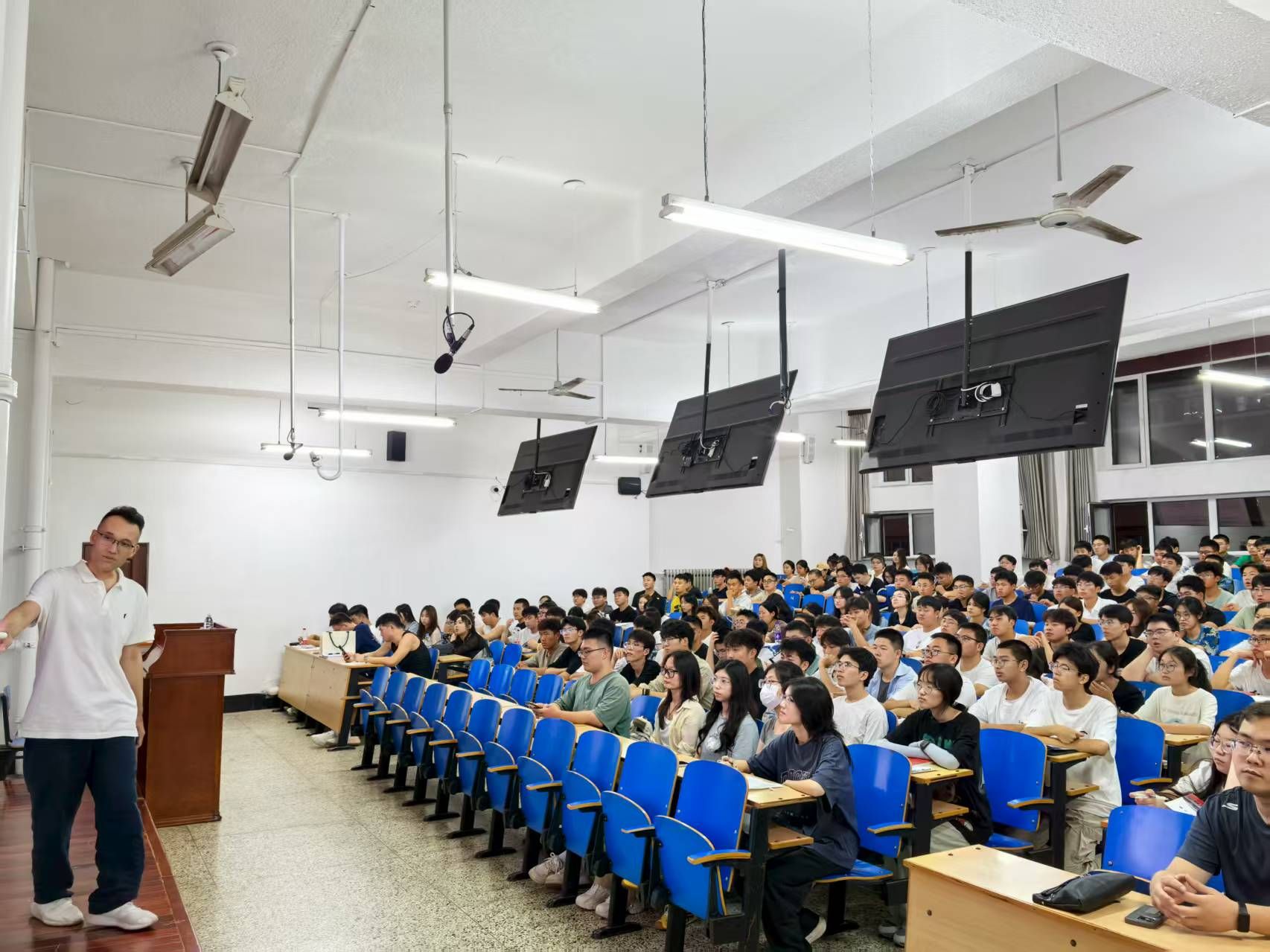 91日晚,瓜子tv 在博雅楼222举办新生安全教育第一课,学院本科生、研究生全体辅导员,2025级本科生、研究生参加了本次讲座。本次讲座由学院党委副书记蒋思主讲