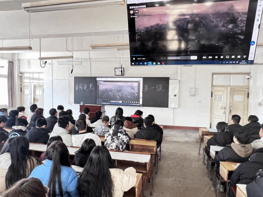 团委书记肖鹏老师在新华楼201教室为大一、大二全体同学带来了“爱国爱党第一课”这场别开生面的活动。此次课程以电影《建党伟业》为载体,带领同学们重温中国共产党的光辉历程,感受革命先烈为国家赴汤蹈火的崇高精神。