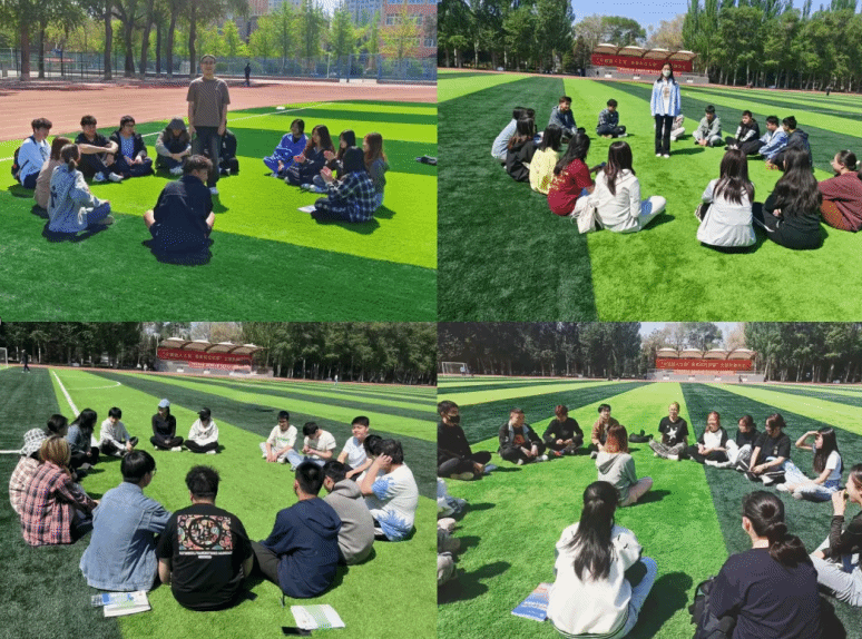室外心理健康班会能让学生在实践中学习和体验心理健康知识,这种亲身体验的方式更加直观、生动,有助于学生更好地理解和掌握知识,增强心理健康教育的实效性。室外提供了更多的活动空间和可能性,不仅有助于提高学生的参与度和兴趣,还能让学生在轻松愉快的氛围中学习和交流,有助于放松身心,缓解压力,对心理健康产生积极的影响。在班会中,各班班长与心育委员积极发言,叙述了德智体美劳全面发展的重要性,各位同学也都畅所欲言,谈心中所想。