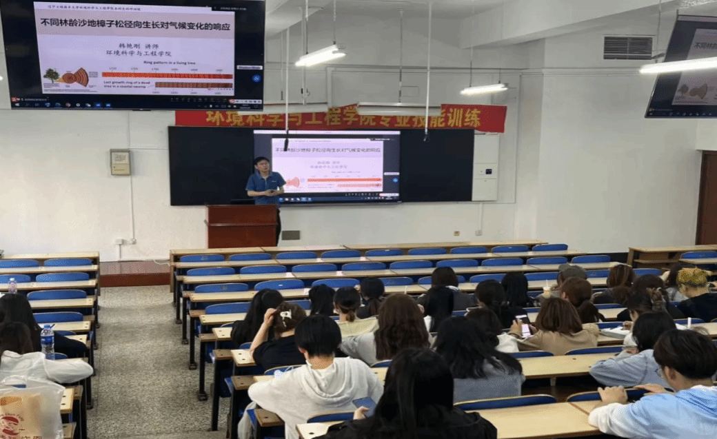 通过老师的讲解同学们了解到了全球气候变化导致森林生态系统的结构与功能发生改变,甚至出现树木死亡与林分衰退的现象,研究林分生长对气候变化尤其是干旱事件的响应有助于预测未来气候变化下生态系统的稳定性。