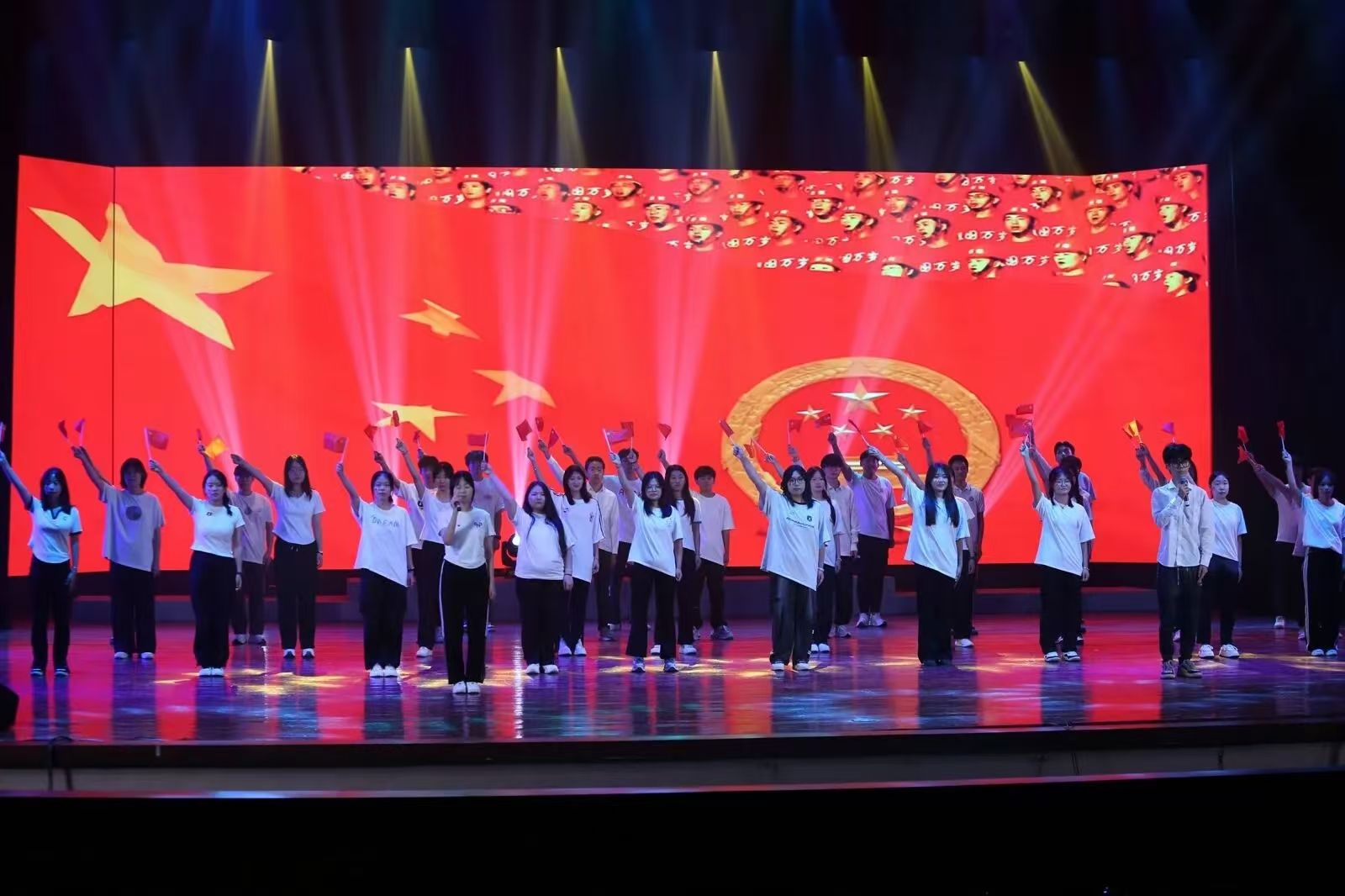 晚会以各教师代表的诗朗诵《我爱你中国》、学生大合唱《我和我的祖国》闭幕,为此次迎新晚会画上句号。至此瓜子tv 2024级“环抱未来”迎新晚会完美结束。