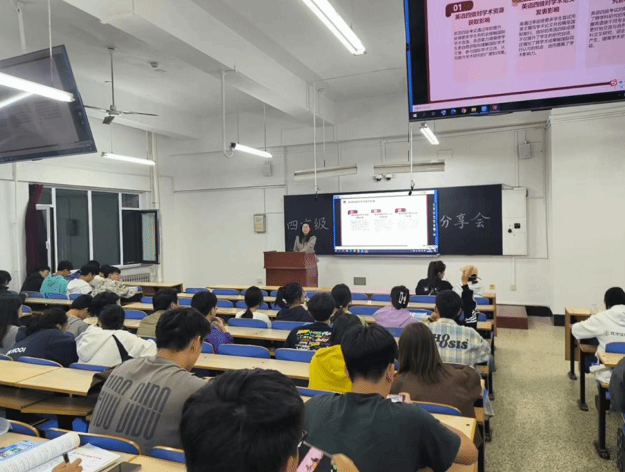 举办了一场别开生面的四六级经验分享会。本次分享会特邀资深英语教师王雪芹老师担任主讲,为众多备考学子传经送宝。分享会现场座无虚席,同学们热情高涨,充满期待。