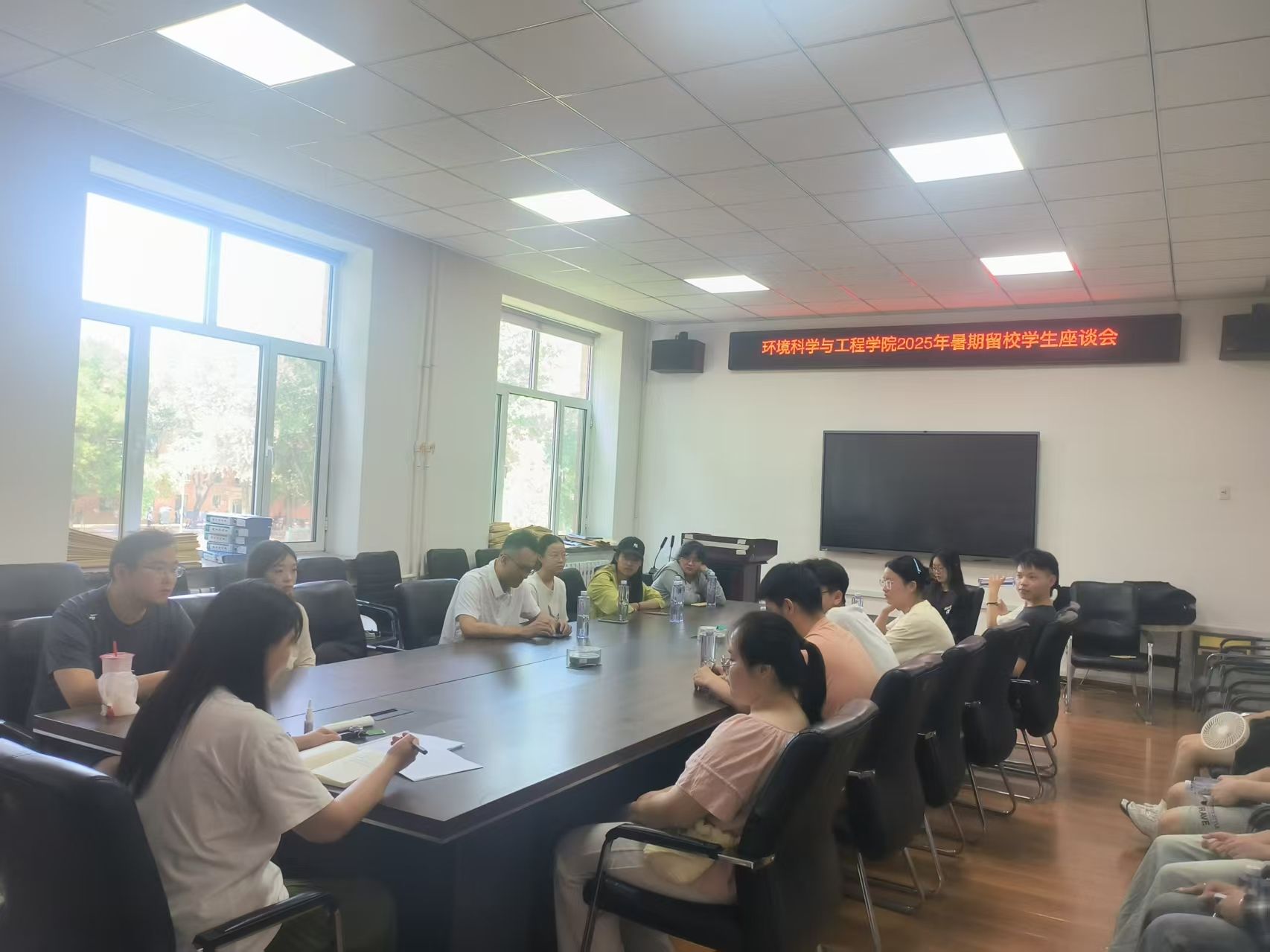 在学院会议室召开了2025年暑期留校学生座谈会。全体辅导员及学院留校学生参加了此次会议。